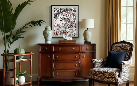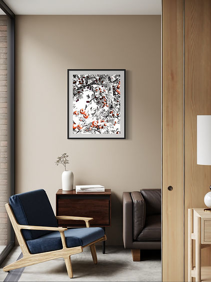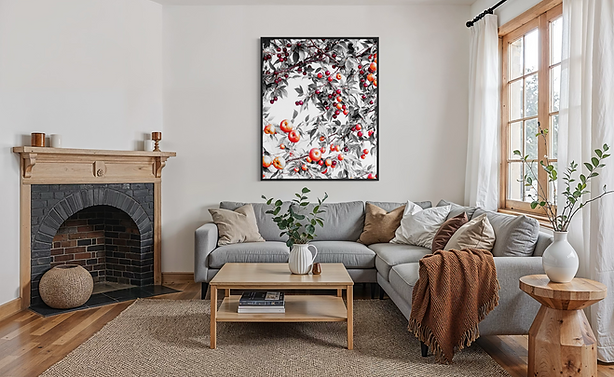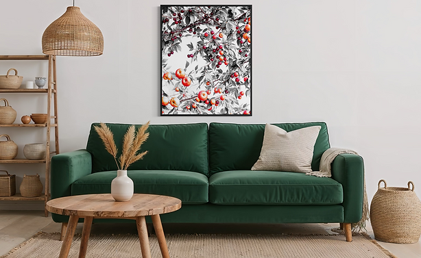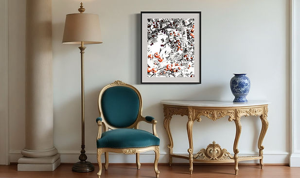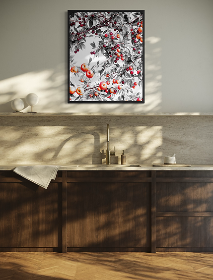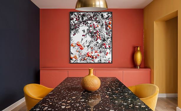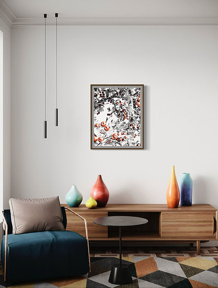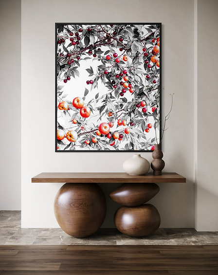 "Fruity tree" is between abstract and realistic visual art. Simple color scheme, decorative composition, bring a classic and stylish piece of art.