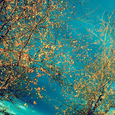 Dazzling golden branches are illuminated by dusk sunshine, under summer teal sky, bring a powerful and zealous "Into Sky".