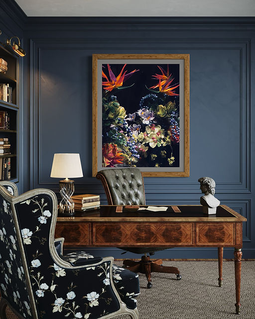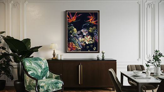 Splendid floral arrangement, vivid and dramatic color, " Seventh heaven" demonstrate a proud joy.