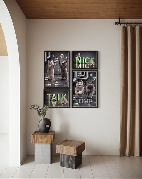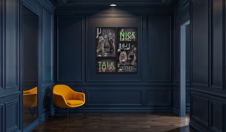These contemporary cat arts bring playful charm and modern character to any interior, blending realism with graphic design elements. This cat series combines humorous, elegance and contemporary style which is perfect for modern interiors.